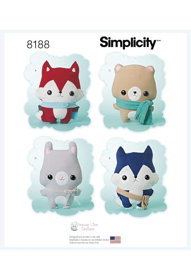 Amazon Com Simplicity S9498 Cheetah Lion Zebra Elephant Giraffe Easy Plush Animals Sewing Pattern R11342 Arts Crafts Sewing